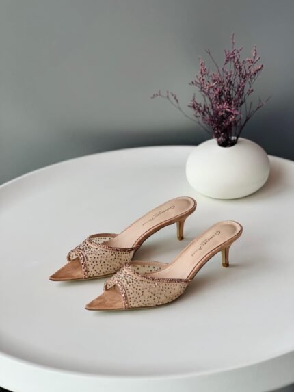Gianvito Rossi high heels in beige with rhinestones