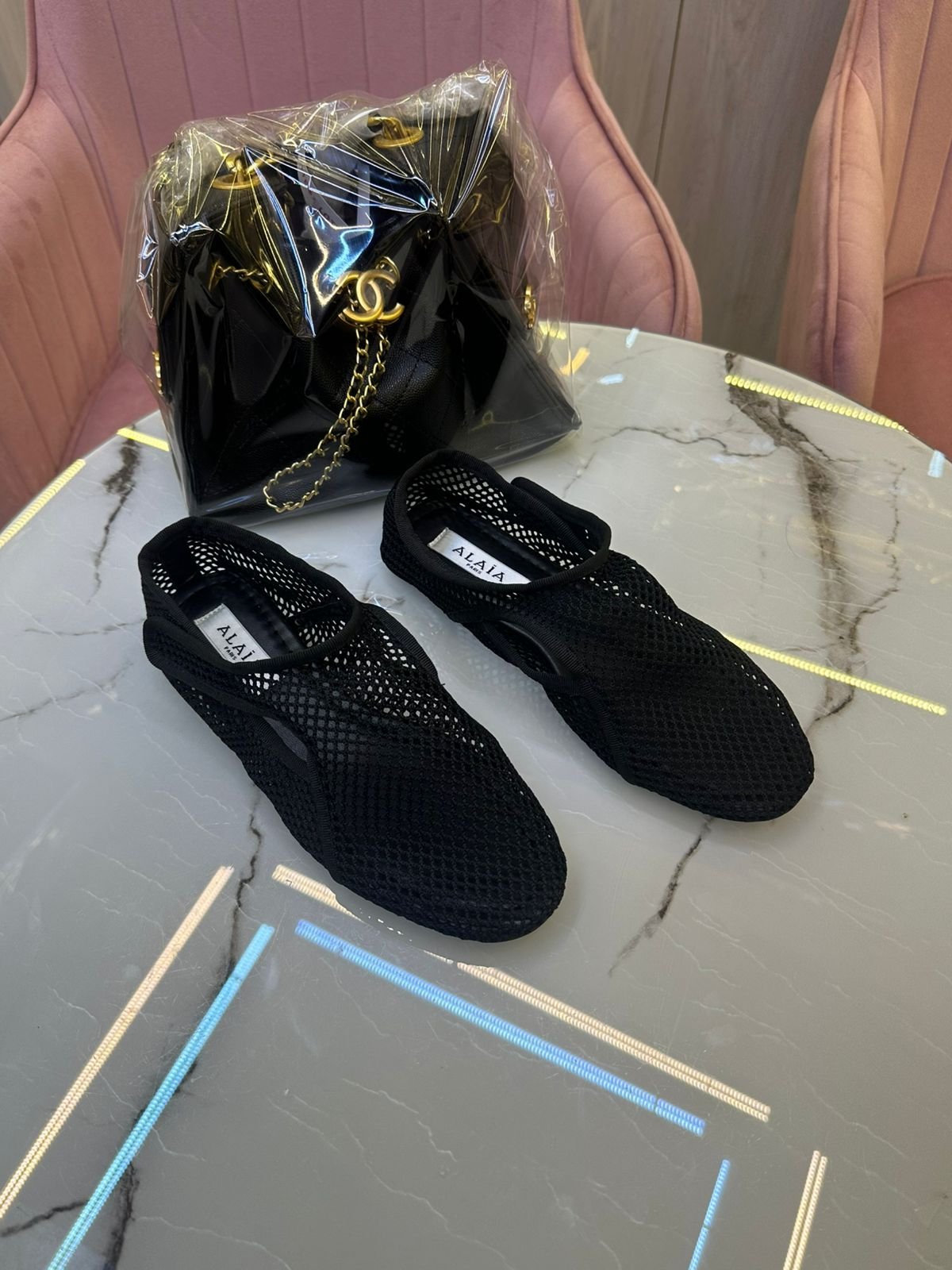 Alaïa Fishnet Ballet Flats Black Mesh
