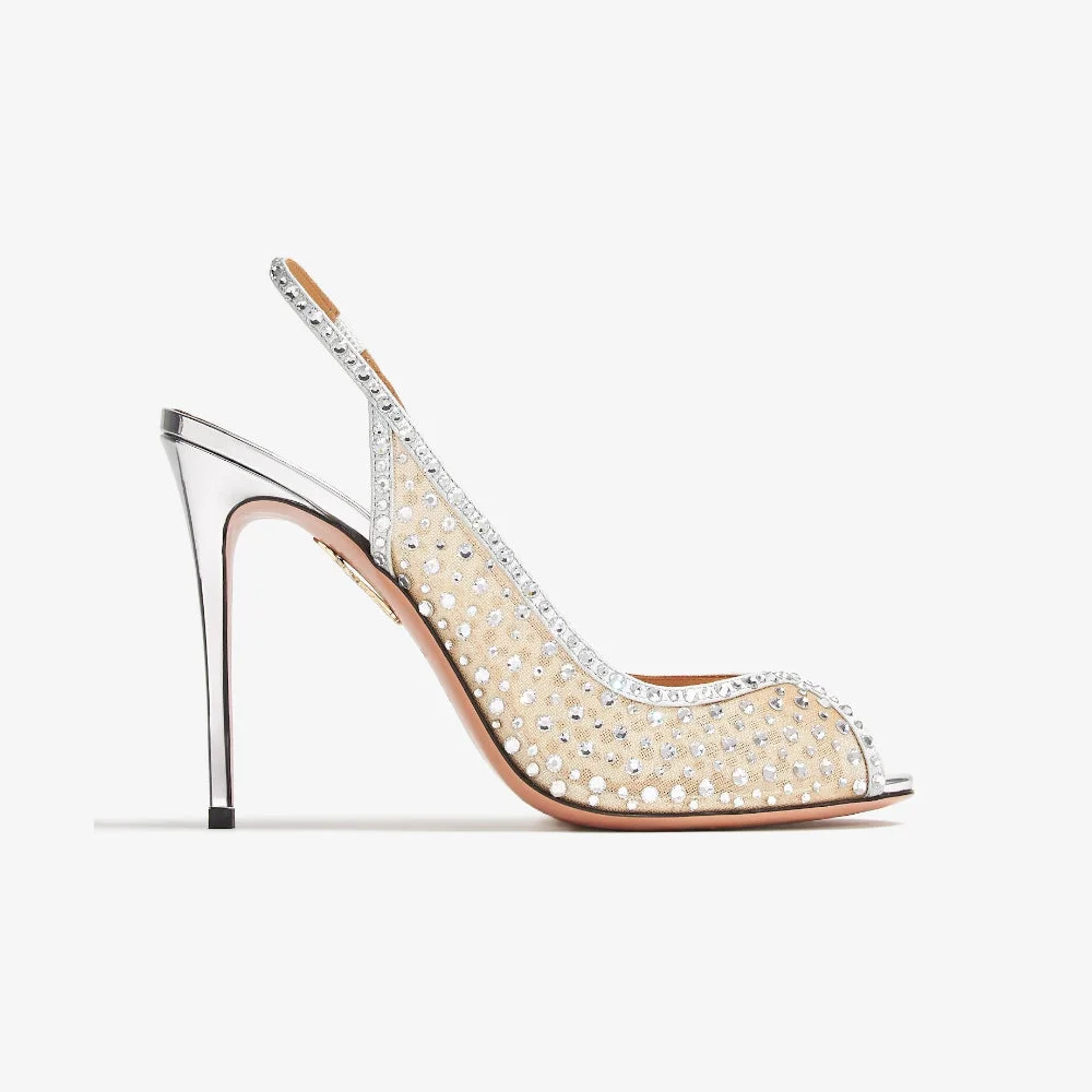 Aquazzura Crystal Lover 105 Silver Sandals