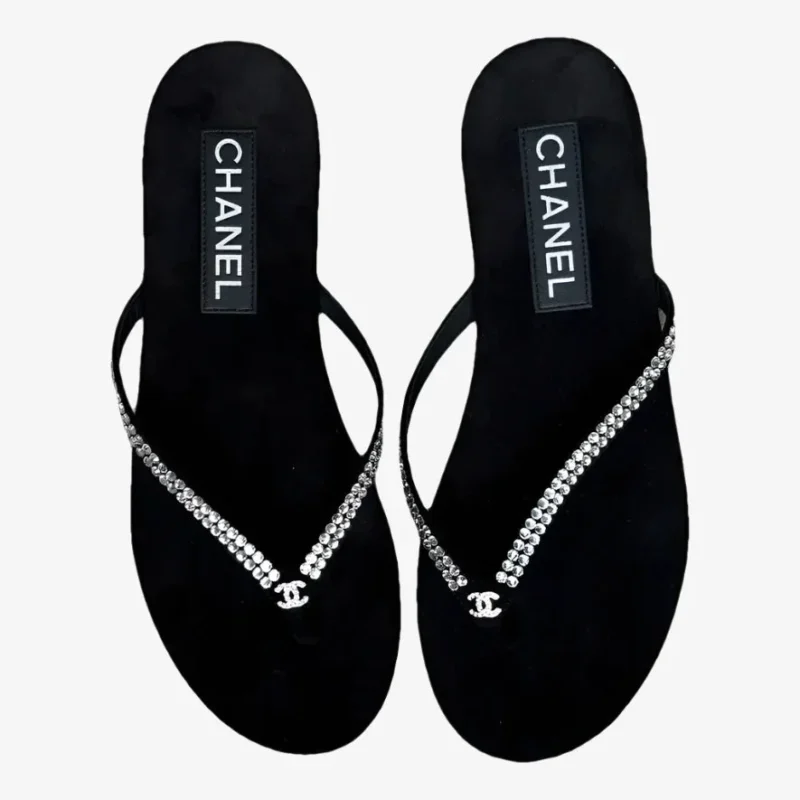 CHANEL 25P CC RAFFIA BALLET SHOES BLACK