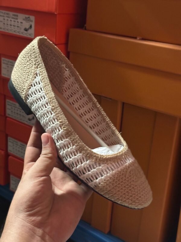CHANEL 25P CC RAFFIA BALLET SHOES WHITE BEIGE
