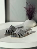 Gina Women’s Silver Rhinestone Studded Low Heel Sandal