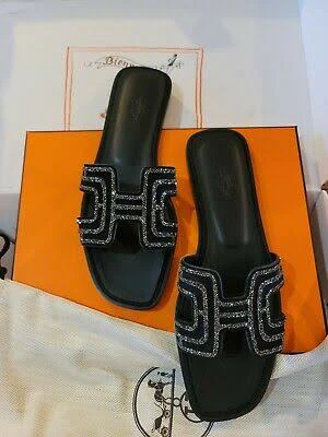 Hermès Oz Women’s Leather Closed Toe Slippers in Black