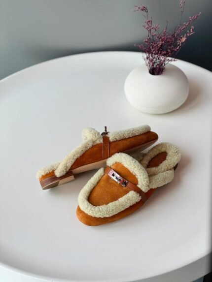 Hermès Oz Women’s Leather Closed Toe Slippers in Brown